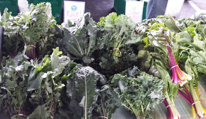 As I wandered up and down the small market, I picked up big bunches of kale, curly garlic scapes, bright red strawberries, and snow-white fresh goat cheese. I teamed up with a mother-daughter duo from Rochester, Rose and Mary Ann, and we added a few more items to our shopping bags.