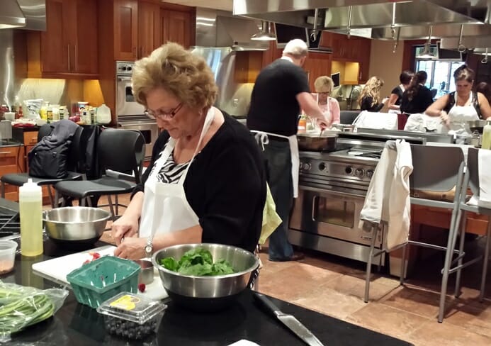 Back in the kitchen, we unloaded the ingredients that we had gathered, and got down to work. The interactive class format allowed for as much or as little participation as desired.