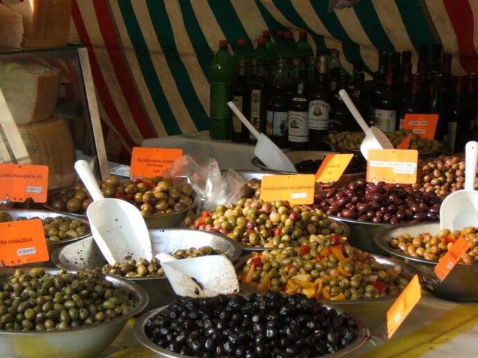 On my first solo trip to Paris, I was in market heaven. I had drooled over a beautiful coffee table book about the numerous Paris markets before setting out. I had even rented an apartment close to one of them, with the idea that I would shop at the market and then experiment with French cuisine. Naturally, this did not happen. The last thing I wanted to do after 10 hours of walking around the city each day was to start cooking. I did, however, make terrific use of the markets: eating lunch at one, picking up prepared food for dinner at another, and loading up my suitcase with treats that would likely have been confiscated at the airport had they been discovered.