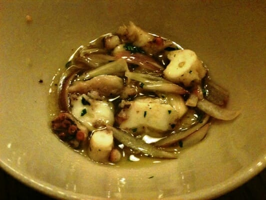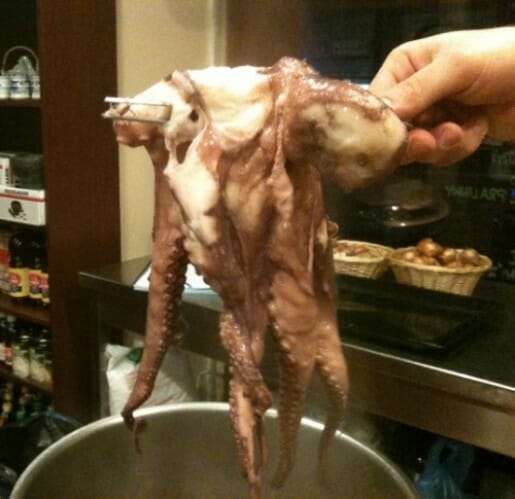 On the appointed evening, I found my way to Chef Parade in Prague 3, Zizkov. Over the next 3 or 4 hours, my 4 classmates and I chopped, stirred, sautéed, baked and simmered our way through a wide array of fish and seafood, under the guidance of Chef Ludek Munzar. We cooked things that I have always enjoyed eating, but have never attempted at home: whole fish baked in a salt crust, squid ink risotto, marinated octopus salad (beginning with a huge, slimy, whole octopus!) and an interesting version of bouillabaisse that involved straining out all of the expensive ingredients, and adding a generous amount of ouzo. Oh, yes.