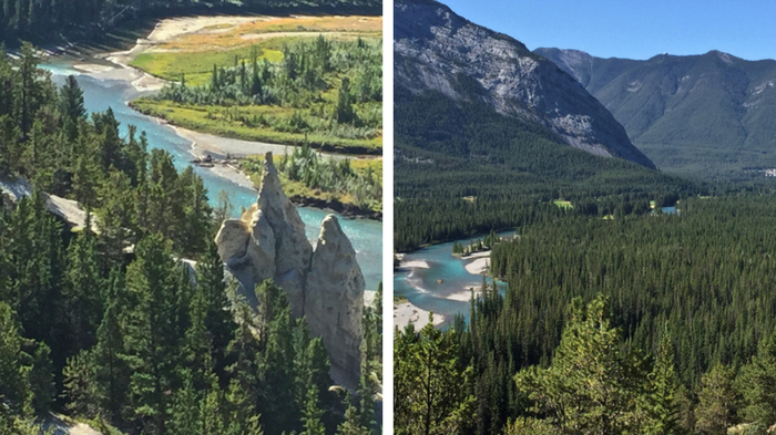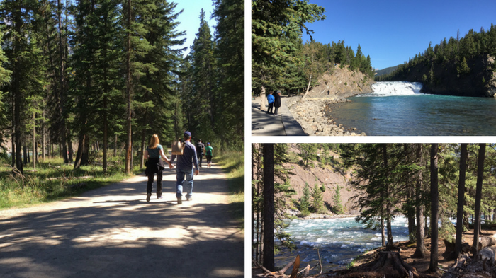 Walk the Bow River Trail. This easy walk along the Bow River is right in the town of Banff yet you'll see rapids and a small waterfall. As you can see above, it's quite beautiful.