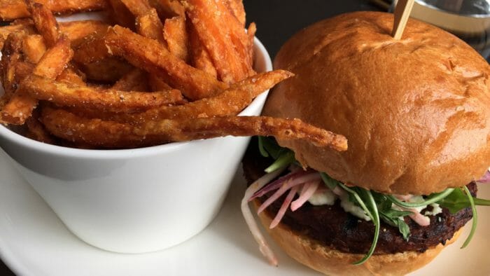 A really great veggie burger at The Axe bar at the Fairmont. You can see a view from the Axe further down the page.