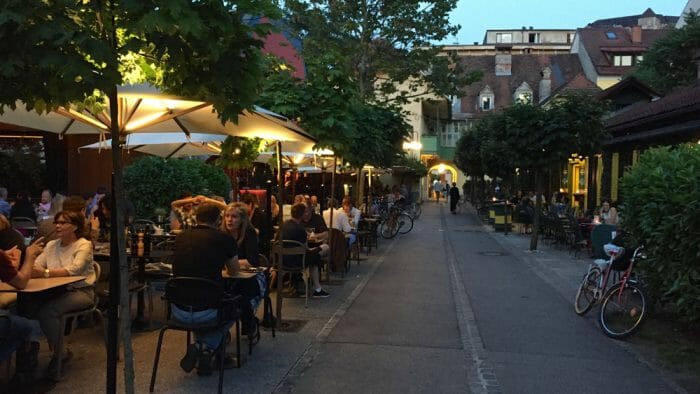 A block away from the hostel is Karvana SEM cafe. This fabulous cafe is at the Slovene Ethnographic Museum. It has a patio and tables for meals and sling chairs spotted around the grounds for coffee and talking or reading. A great vibe. Open from 7am to 1am most days but later on weekends.