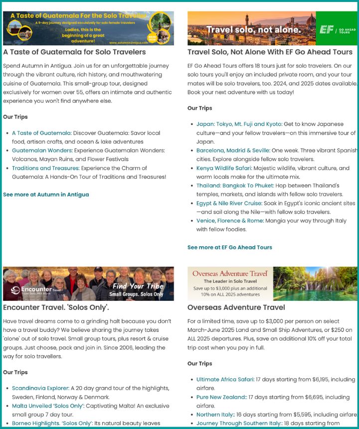 - SusanI am astonished and immensely grateful for the support received from you and the Solo Travel Society. What wonderful human beings, and what good advice you have!