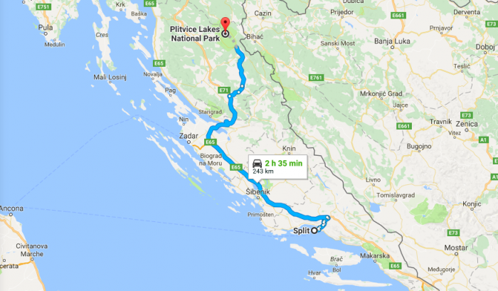 - How to get to the Plitvice Lakes – You can only get to the lakes by road which means car or bus. The bus was about 3 1/2 hours. By car it's 2 1/2 hours of solid driving. Here's a map.